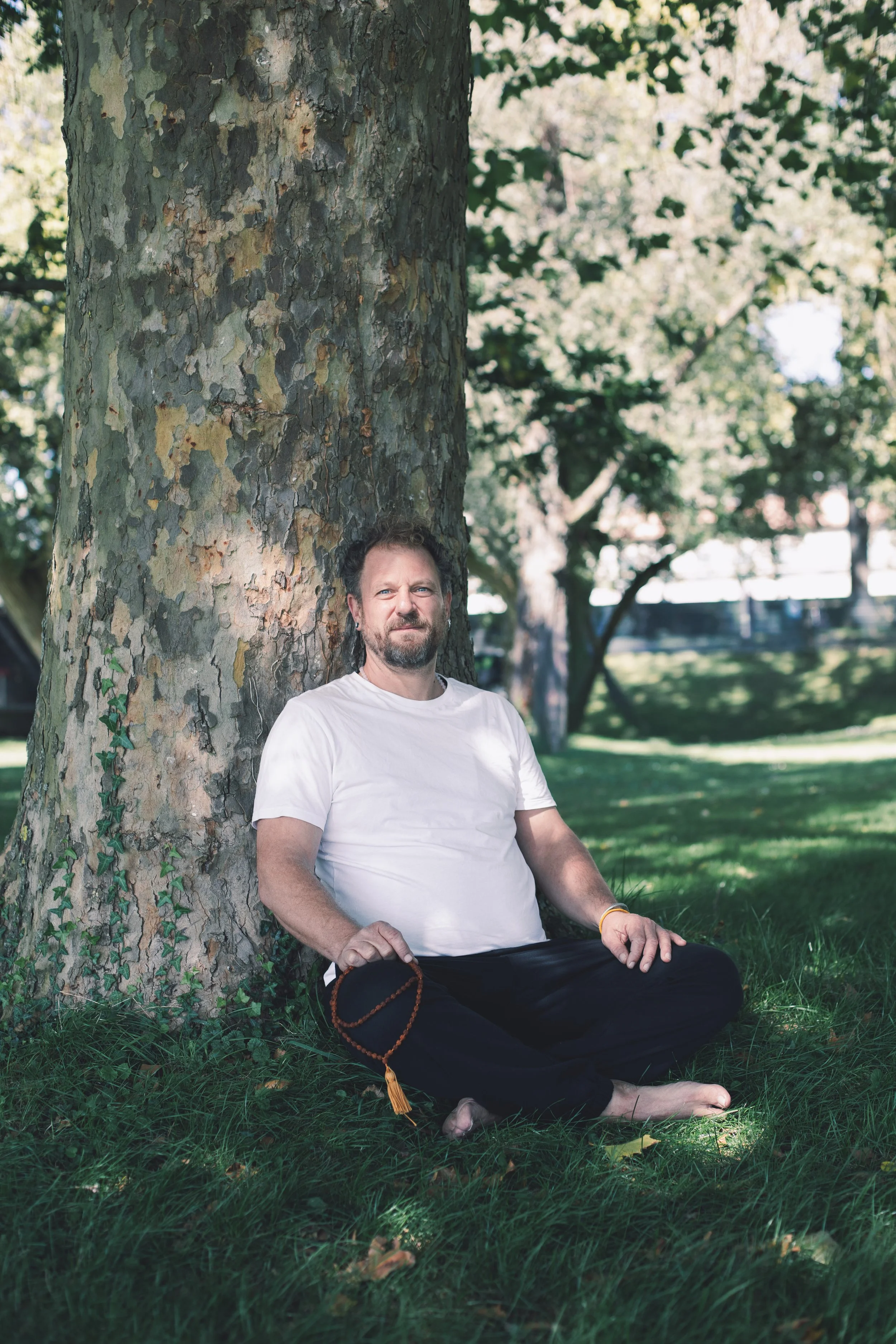 Hinter Yoga Saha steht Andreas "Rohan" Neumann.